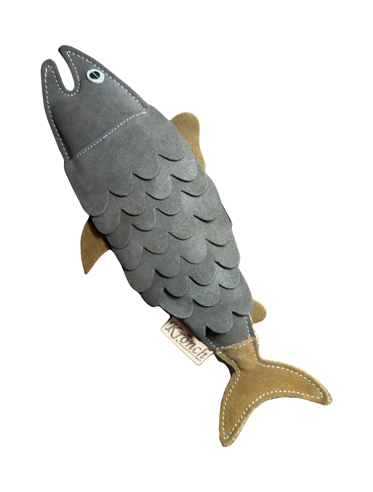 Kronch Lakse Aktivitetslegetøj er en spændende ny tilføjelse til sortimentet og et oplagt valg til hunde, der elsker udfordringer. Det flotte laksedesign måler hele 38 cm i længden og er udstyret med flapper på begge sider, hvor du kan gemme godbidder.